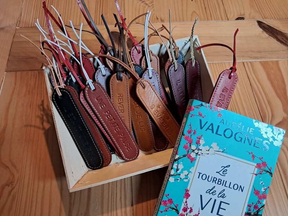 Marque-page cuir fabrication 100% artisanale Message gravé Cuir de collet