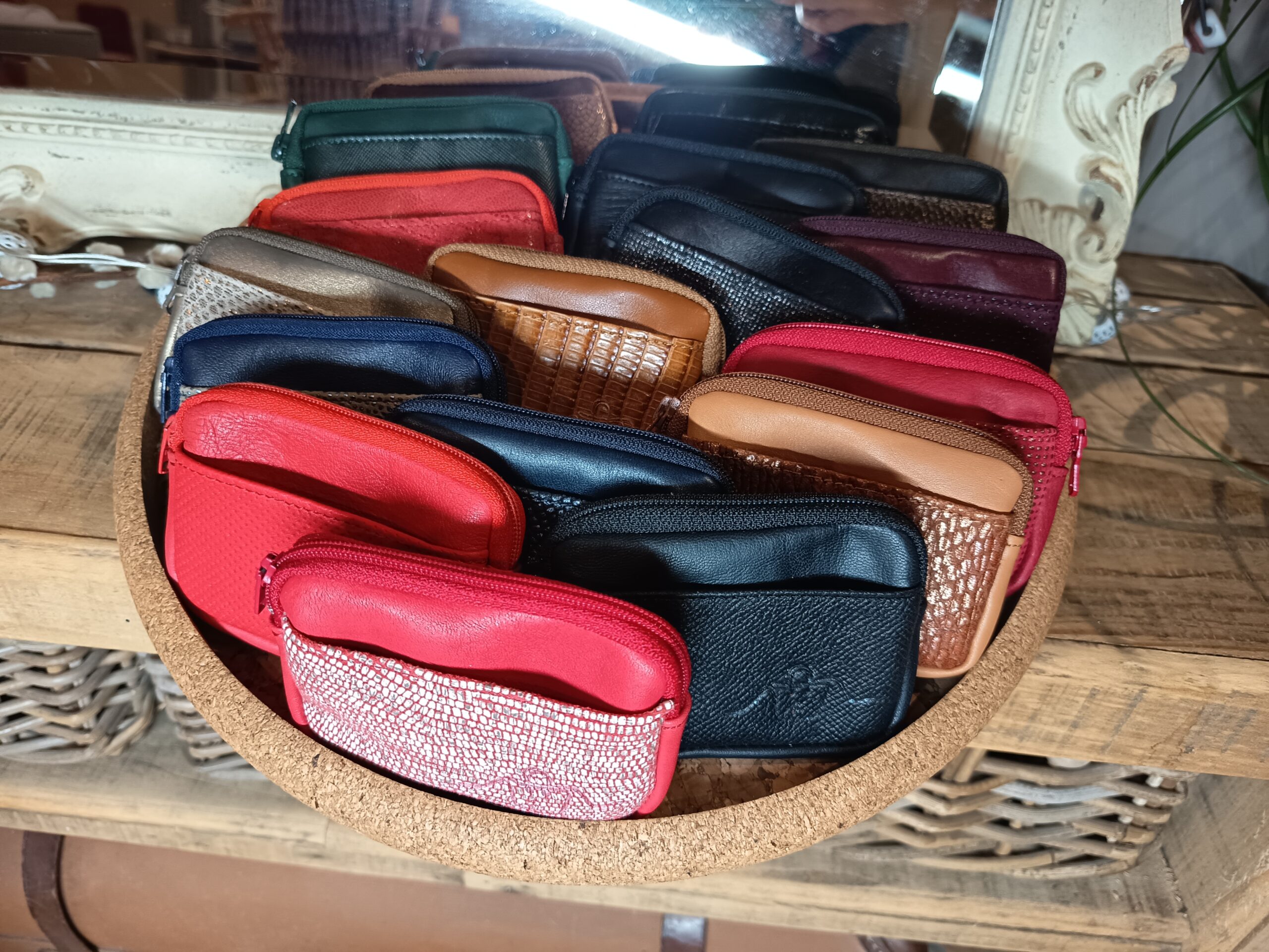 Porte-monnaie cuir Bi-matière Une poche devant pour carte bleue Une poche zippée pour la monnaie